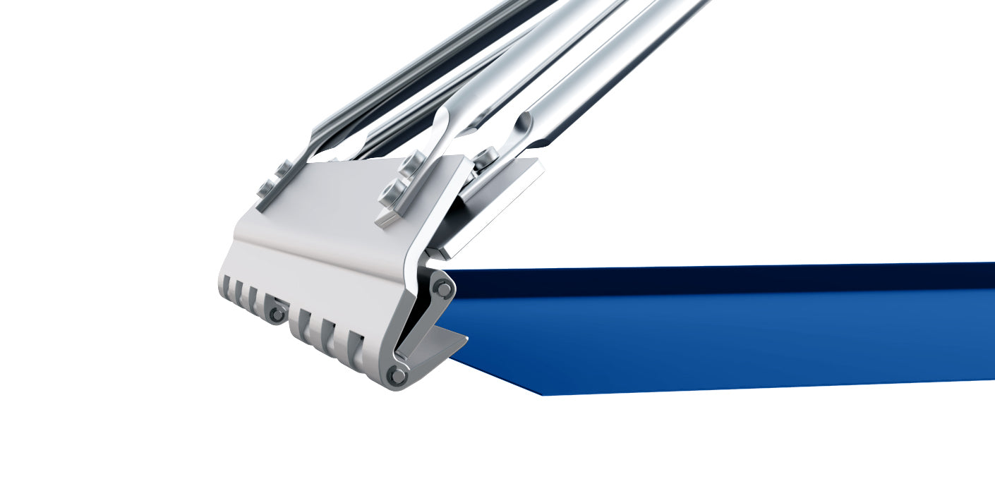 Der UniBieger® wird in der ensprechenden Breite auf der zu biegenden Blechbahn in Position gebracht.